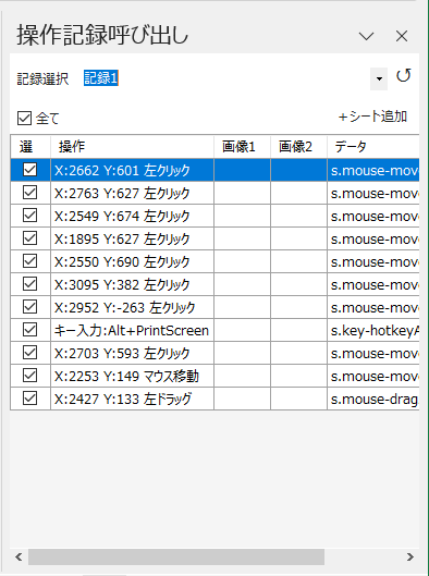 記録した操作内容は、後記の「操作記録呼び出し」機能を介してExcelシートに反映させることができます。
