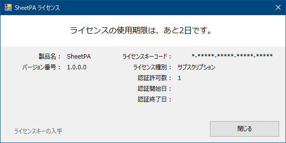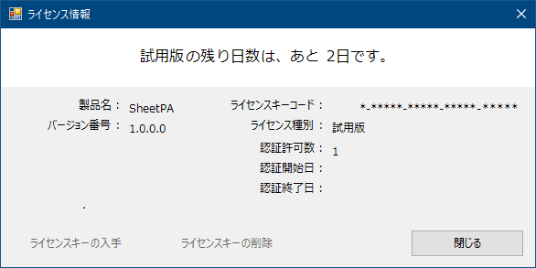 (ライセンスメッセージ) ※試用版を使用中または、ライセンス切れが近い場合に表示されます。
