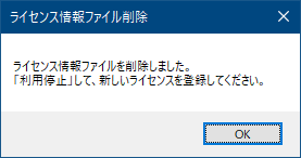 ④ライセンス情報が削除されます。「OK」をクリックしてください。