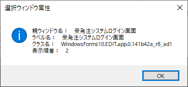 - 絞込み:親ウィンドウの構成ラベル、構成クラス名を[EDIT]、[BUTTON]、[COMBOBOX]等で区分けして表示されます。