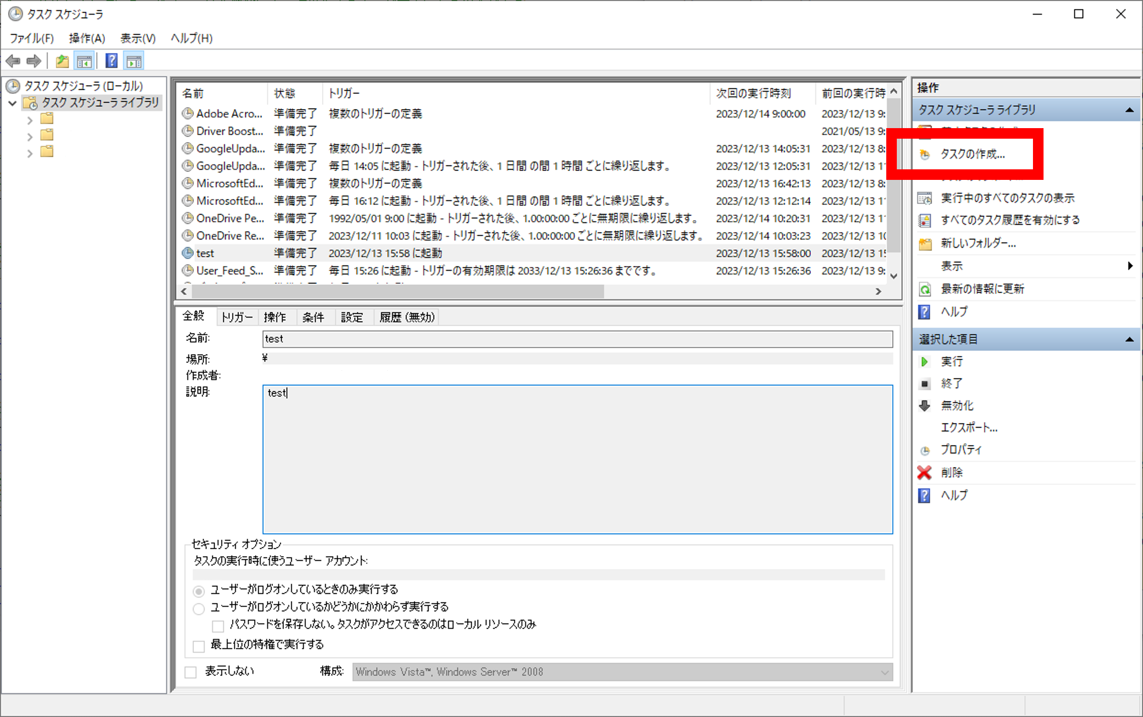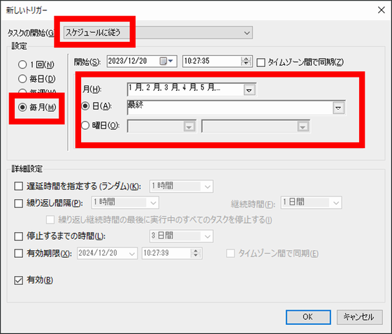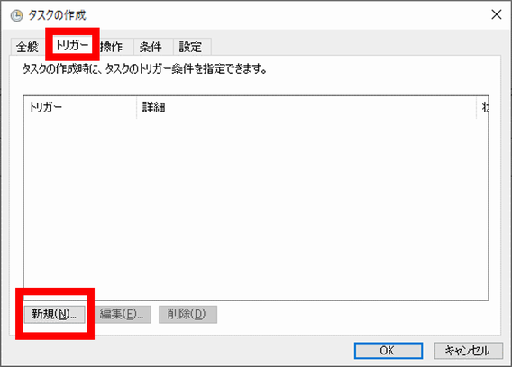 - 設定が完了したら「OK」ボタンを押下し、タスクが追加されていることを確認します。