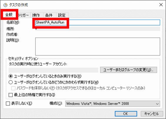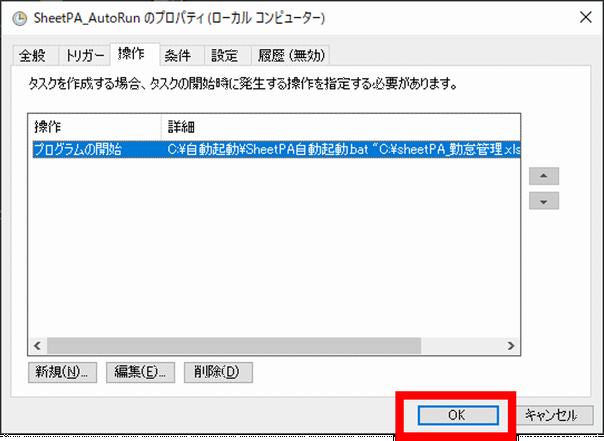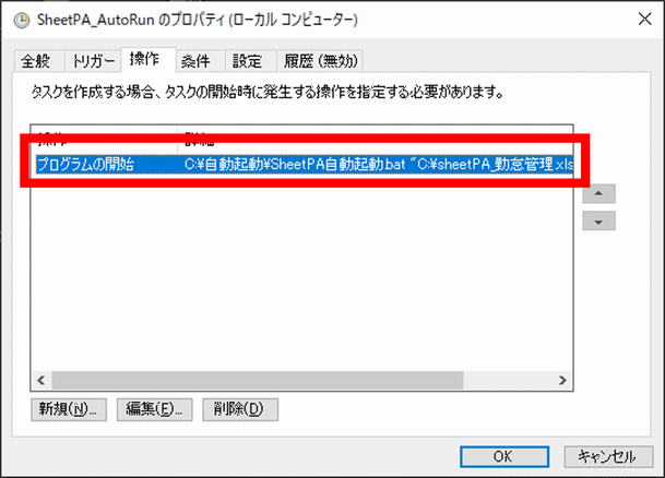 作成されたタスクによって、batファイルが実行され、SheetPAが自動で起動されるようになります。